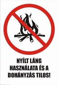 Nyílt láng használata és a dohányzás tilos!, öntapadós tábla