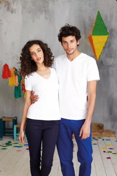 KARIBAN CALYPSO MEN'S SHORT SLEEVE (KA353) nyári rövid ujjú férfi póló pamut/elasztán V nyakú oldalvarrott testhez álló