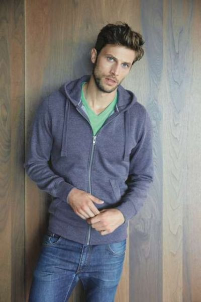 MELANGE FULL ZIP HOODED (KA460) férfi pulóver poliészter/pamut zsebes végig zipzáras kapucnis