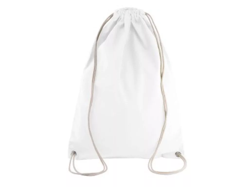 • Pamutból készült, zsinóros hátizsák fehér pamut zsinórral