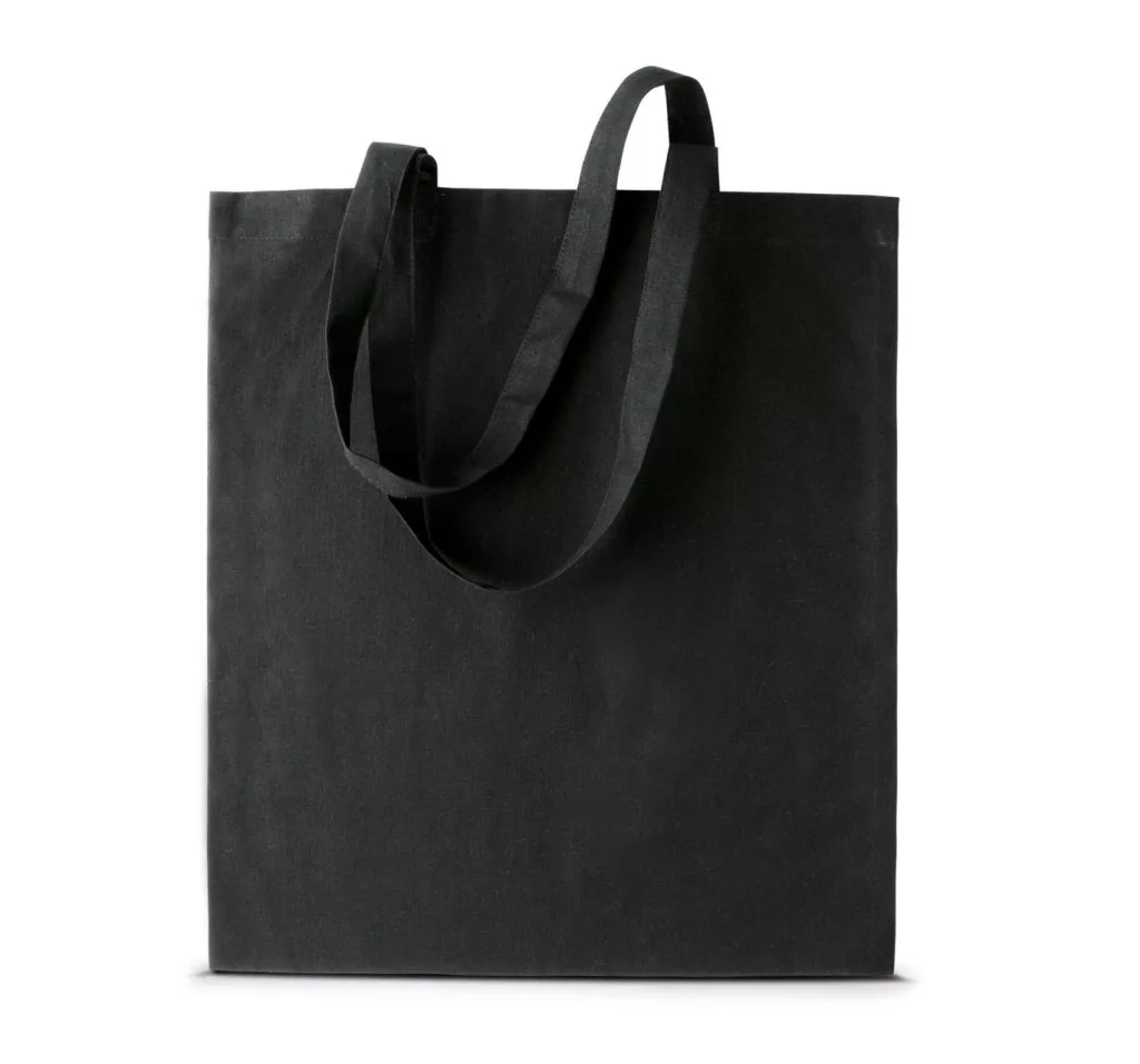 Pamut bevásárlótáska, a táska anyagából készült 70 cm hosszú fogantyúval