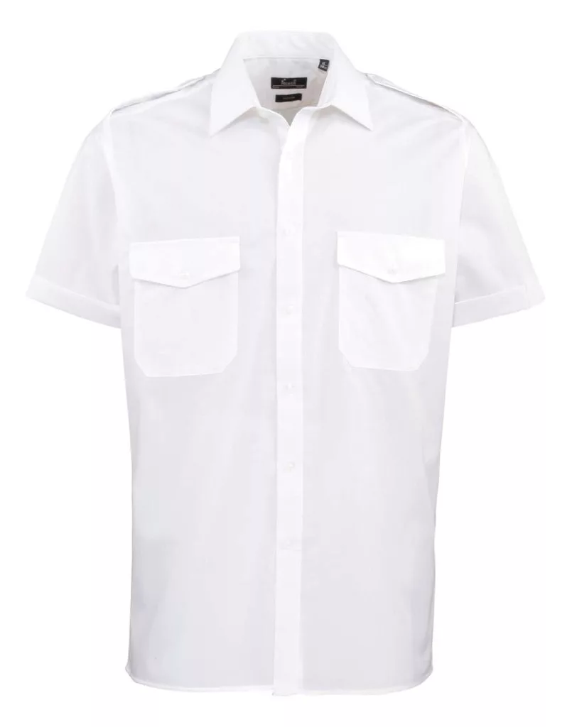 utt_pr212wh-xl Premier PR212 MEN’S SHORT SLEEVE PILOT SHIRT XL