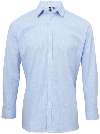 utt_pr220lb-wh-m Premier PR220 MEN'S LONG SLEEVE GINGHAM COTTON MICROCHECK SHIRT M