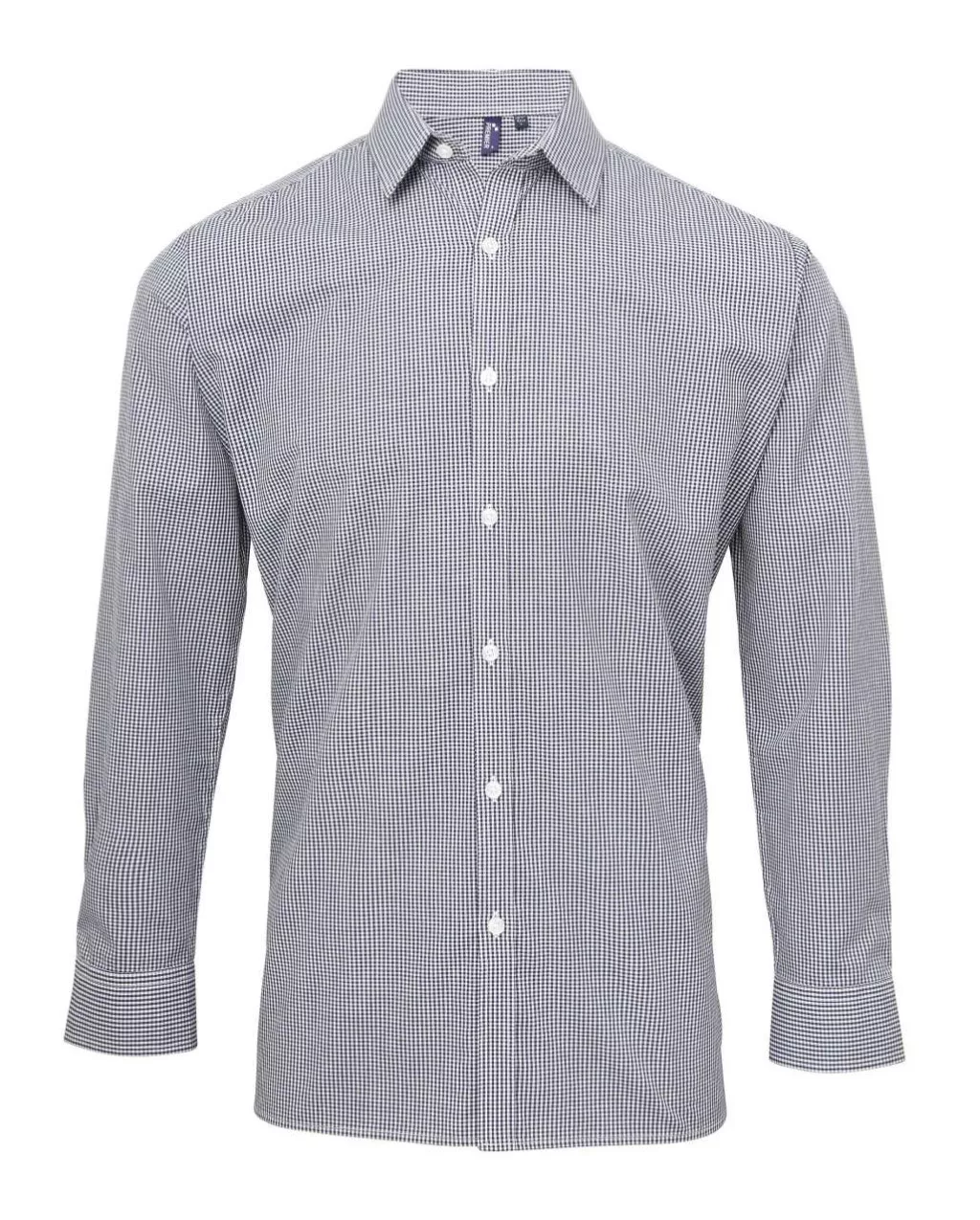 utt_pr220nv-wh-2xl Premier PR220 MEN'S LONG SLEEVE GINGHAM COTTON MICROCHECK SHIRT 2XL