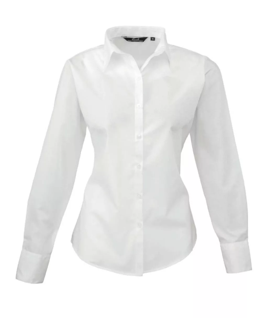 utt_pr300wh-s Premier PR300 WOMEN'S LONG SLEEVE POPLIN BLOUSE S