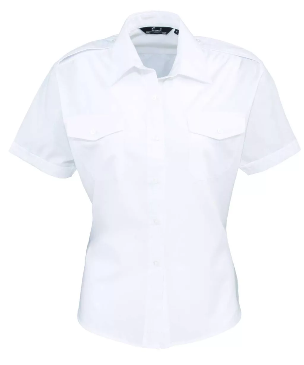 utt_pr312wh-m Premier PR312 WOMEN'S SHORT SLEEVE PILOT SHIRT M