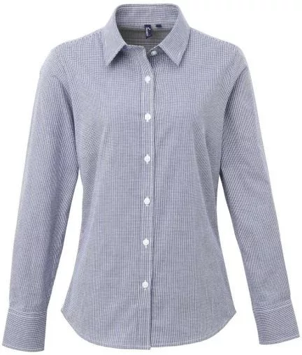 utt_pr320nv-wh-2xl Premier PR320 WOMEN'S LONG SLEEVE GINGHAM MICROCHECK SHIRT 2XL