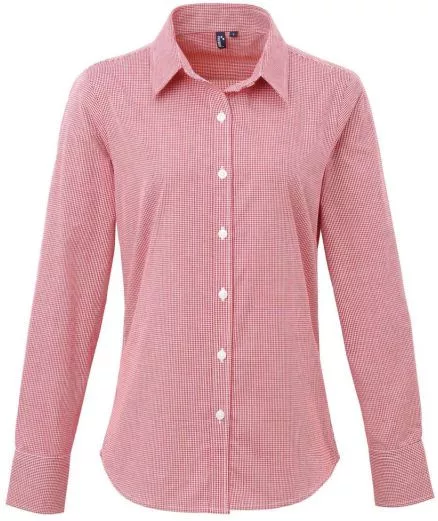 utt_pr320re-wh-xs Premier PR320 WOMEN'S LONG SLEEVE GINGHAM MICROCHECK SHIRT XS