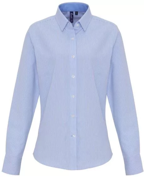 utt_pr338wh-oxb-m Premier PR338 WOMEN'S COTTON RICH OXFORD STRIPES SHIRT M