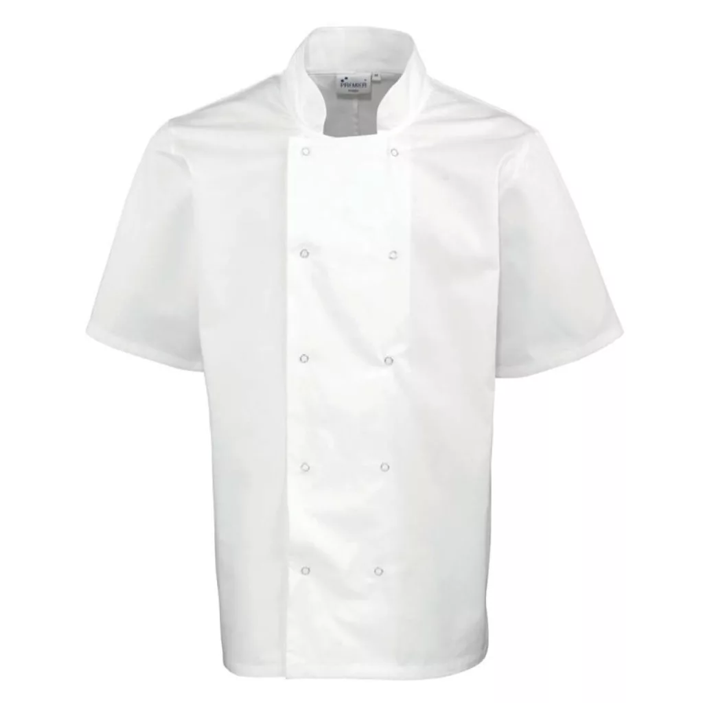utt_pr664wh-l Premier PR664 CHEF'S SHORT SLEEVE STUD JACKET L